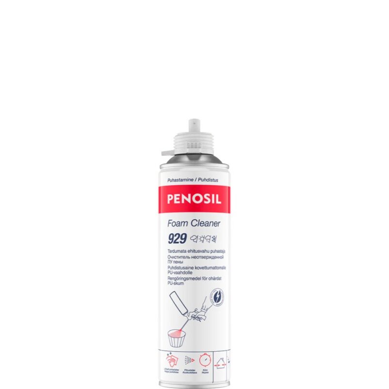 PENOSIL Foam Cleaner 929 eriotstarbeline pihustatav puhastusvahend tardumata ehitusvahu eemaldamiseks töövahenditelt ja pindadelt.