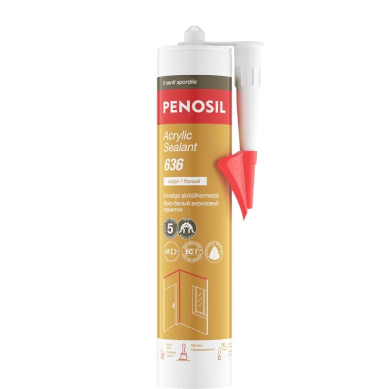 PENOSIL Acrylic Sealant 636 on eriti peene tekstuuriga veepõhine akrüülhermeetik tühimike ja vuukide täitmiseks enne värvimist. Moodustab kauakestva plastse UV- ja hallituskindla ühenduse kõige levinumate ehitusmaterjalidega, näiteks betooni, kipsplaatide ja puiduga ning tagab siledad ja laitmatult viimistletud pinnad. Iga ostetud Acrylic Sealant 636’ga toetate Eesti Maadlusliitu ning annate hoogu laste ja noorte maadluskarjäärile.